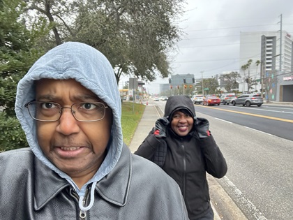 Breakfast was not included with our stay at the Holiday Inn Express. Therefore, rather than pay for a hotel breakfast, we decided to eat at a restaurant. There is a Waffle House a short walk from the Holiday Inn Express, but this was not going to work for Traci. She is dedicated to getting 10,000 steps per day. As a result, she chose Denny's, which was a 30-minute walk from the hotel. The roundtrip would put her very close to her goal. We arrived there in a little under 30 minutes thanks to the brisk pace that Traci established. It was another cold day of 32 degrees Fahrenheit, but it did not feel too bad because the sun was shining and there was not much wind. I could actually feel a few beads of sweat forming by the time we reached Denny's. After our hearty Grand Slam breakfast at Denny's, we went across the street to Walmart to buy a few more snacks for the cruise and then made the walk back to the hotel in time for the noon check-out.