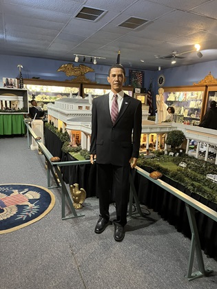 We arrived at the Presidents Hall of Fame in Clermont, Florida. This roadside attraction has charm and was quite impressive. It contains life-size wax figures of U.S. presidents and first ladies from George Washington up to President Trump (1st term). The creators of the museum died in 2020; therefore, there is no wax figure of President Biden. The wax figures range from decent to really good. I was caught off guard when President Obama slowly began turning his head! There was another interesting moment when I was waiting for some visitors to move along so that they would not be in the photo that I was waiting to take. After waiting a minute or so, I finally realized that those who I thought were museum visitors were actually wax figures!