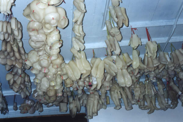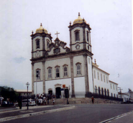 After everyone was back on the bus, we headed to the Bonfim Church. This church is a Catholic church where people come to pray for healing. They often leave photos of themselves or the part of their body that they want healed. Some people leave behind plastic replicas of the body part that has been healed. These pictures and replicas can be seen in the rooms adjacent to the sanctuary. They hang from the ceiling and walls. It is really a sight to see. Bonfim is also the site of an annual Candomblé religious ritual where the people dress in white and parade to the steps of the church. This festival happens in January. Outside the church, there were hordes of street vendors trying to sell ribbons to tie around your wrist. These ribbons are supposed to bring you good luck if you wear them until they fall off. Traci and I didn't buy any. Continue...