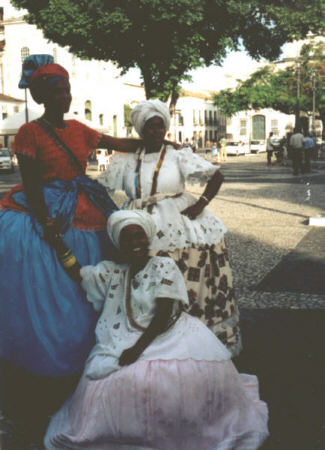 There were several street vendors in the Old City. There were guys pushing juice carts. There were people who would come up to you and try to sell you beads, jewelry, and crafts. Some of them were very persistent; however, they were always pleasant even if you refused to buy from them. My favorite street entrepreneurs were the three Bahian Ladies. These three ladies were dressed in tradition Bahian clothing and would pose so that you could take a picture of/with them. As soon as you took the picture, they were expecting money and they would follow you around smiling and/or flirting (in the case of a male photographer) until you gave them money. They even resorted to tickling a guy. I got a kick out of watching them track down the money. Traci took a picture of them without them knowing so they didn't follow us.