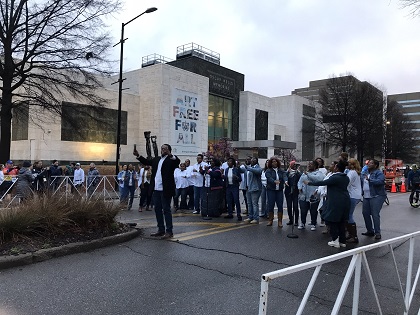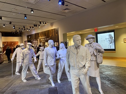 The rest of the day was cold, windy, and rainy. This did not deter our planned sightseeing itinerary. We walked a few blocks to the Birmingham Civil Rights Institute. Traci and I have been to several similarly themed museums across the country; however, this one in Birmingham is very well presented. Our visit began with an eight-minute film explaining the rise of injustice and segregation in Alabama. It began during the slavery days and continued through the mid-20th century - first as unwritten societal rules and eventually law. At the conclusion of the film, the screen lifts and doors open to invite guest into the rest of the museum. The exhibits are displayed in chronological order detailing the tragedies of injustice and segregation to the struggle against injustice and finally the triumphs of overturning segregation laws. The thing I liked about the Birmingham Civil Rights Institute is that you are not overwhelmed with too many displays to read or too many films to watch. I thought the amount of information presented was concise and effective. However, there is a section where there is a Ku Klux Klan robe on display. I've seen these at other museums of similar themes and it always makes me wonder who dug in their closet and decided to donate their old clan robe. In this case, I noticed that the donor was listed as "anonymous".