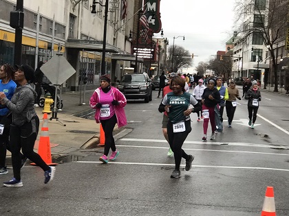 Traci at mile 3 of the Mercedes-Benz Birmingham Half Marathon