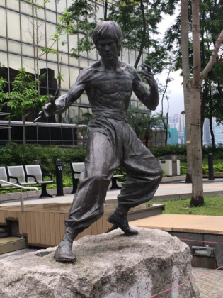 Our wandering eventually led us back to the Victoria Harbor waterfront where our hotel was located. It was there where we saw upscale restaurants and chains such as Ruth Chris. We crossed the street via the pedestrian bridge to walk along the beautiful waterfront where we could see the city skyline in the background. We eventually crossed back over and ended up on the Avenue of Stars. This is an area where there were statues and tributes to some of Hong Kong’s most famous citizens such as Bruce Lee and Anita Mui. I had never heard of Anita Mui but I enjoyed reading the information posted about her. She was an actress and a mega pop star. She became synonymous with a music genre called Cantopop. She was referred to as Asia's Madonna.