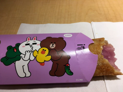 It was around 10:30 PM when we left the restaurant. The night market crowd had thinned dramatically as the vendors were now packing up. Traci and I were headed back towards the subway station when Traci's sweet tooth kicked in. Therefore, we made a detour across the street to McDonald's so that she could get a sundae or something. We do not frequent the golden arches at home but it is fun to check out their menus in different countries. You can find some interesting items that are not sold at home. This McDonald's was no exception. Instead of the apple pie or cherry pie desserts we see at home, the McDonald's in China offer sweet taro pie or pineapple pie. We decided we had to try the sweet taro pie. The cool thing about McDonald's in this part of the world is that you can place your order through a kiosk and then hand your printout to a cashier. There is no need to deal with the language barrier. The sweet taro pie had a sweet purple filling with small chunks of taro in it. Traci did not like it but I did.