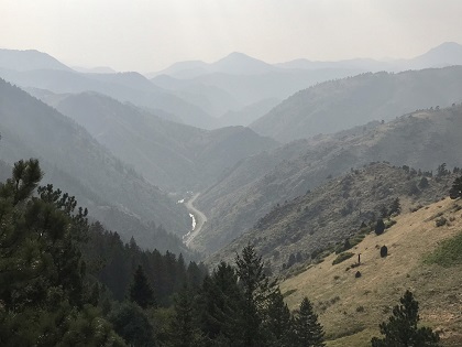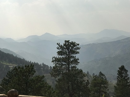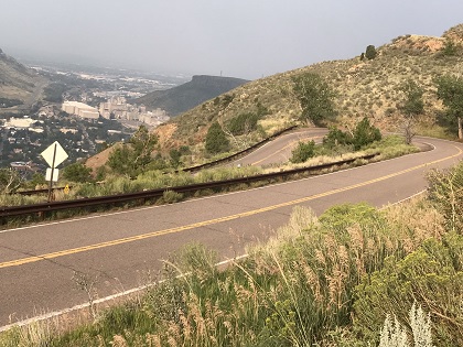 We left the Buffalo Bill Museum as it was closing for the day and we drove the switchback and curvy roads down the other side of the mountain. These were the views I was hoping to see during our journey on the Lariat Loop Scenic Byway. We stopped at several scenic overlooks on our way down the mountain. Our views were hazy due to the California wildfires but mesmerizing, nonetheless. We encountered several cyclist and runners on the two-laned mountain road. I was especially impressed with people biking or jogging up the steep roads.