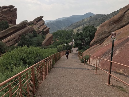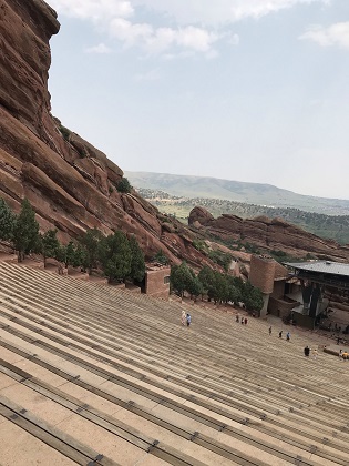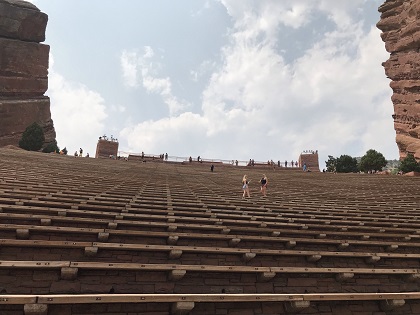 Our next stop was a short drive away. It was the Red Rocks Amphitheatre. This famous concert venue is in the mountains surrounded by red sandstone rocks. It seems that no matter where you park, there are stairs and inclines to climb in order to get to the amphitheater. This is especially challenging because the amphitheater is "at altitude" where the air is thin. I noticed that along the way there are signs directing you to pulse rate monitor stations in case the altitude is getting to you. I did not need a pulse monitor to know my heart rate was significantly elevated. In my case, it was not anything I needed to worry about. It felt like a good workout.
