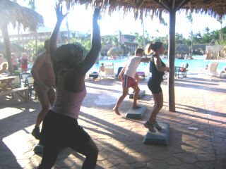 Traci enjoyed the step aerobics class each morning