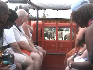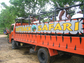 The Outback Safari tour continued as we rode the flashy truck through the pot-holed roads of the small country towns. As we rode through, the people smiled and waved. We passed by several schools. The children seemed very excited to see the truck. They would yell, laugh, and wave as we passed. At one point, we got caught in what our tour guide called a "Dominican traffic jam". We had to stop temporarily as a cattleman lead his herd of cattle across the road.