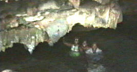 Debbie, Tracey B., and Clarence cool off in the cave water