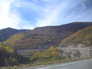 The first thing I learned about the park was why it is named Mesa Verde. Its name is Spanish for green table. The park is on top of an 8500-foot flat-topped green (and red and yellow this time of the year) mountain called a mesa. To get to the visitor center I had to negotiate 15 miles of winding roads along the steep cliffs of this mountain. For someone like me who has a general fear of heights, this drive was scary at times. The higher elevations had no guard rails. Sometimes I would come around a hairpin turn and see nothing but the sky. I even saw a helicopter fly by at the same altitude and we still weren't at the top yet. On the positive side, Traci was able to get some nice views of the landscape below while I was praying we wouldn't ride off a cliff. Continue...