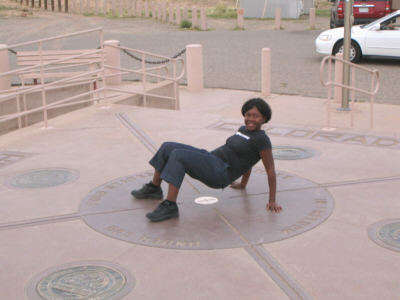 The Four Corners Monument is a small gated area in the middle of the desert. There is nothing else in this area for several miles. What makes this such an interesting stop is that it marks the only place in the U.S. where the borders of four states meet at a single point. You can literally be in Colorado, New Mexico, Arizona, and Utah at the same time! We were charged $3 per person to enter the parking lot. There weren't many people there that day. We all took turns taking pictures of each other posing in all four states at the same time.