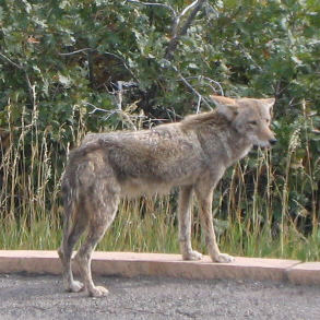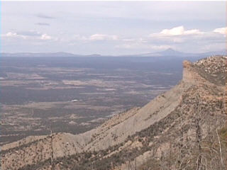 I rode the brake all the way down the mesa. Along the way, I paused for Traci to take a picture of a coyote staring at us from the side of the road. I later stopped at a pull-off so that we could take a picture of an incredible view. Unfortunately, the camera cannot capture the true experience of seeing it with your own eyes.