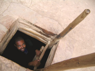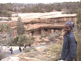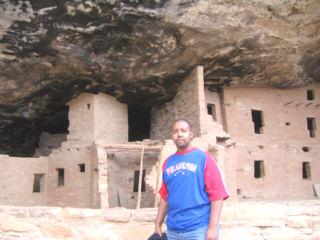 It took us about 20 minutes to drive to the Spruce Tree House cliff dwelling site. I had no idea the park was so big. Some of the other sites can take as long as 45 minutes to drive to. Anyway, the cliff dwellings at Spruce Tree House were occupied by the Anasazi Indians between 1200 and 1300 AD. As with several dwellings in the park, 90% - 95% of this site remains intact. The Indians were masters at carving homes into these rocky cliffs. To get a close-up look at the site, Traci and I had to walk a 1/2 mile down a paved winding path. Once there, we were able to marvel at the ingenuity the Indians used to create these living quarters. They used ladders to climb down into some of the rooms. Traci and I were allowed to climb into one of them.