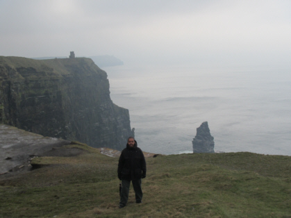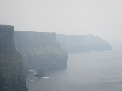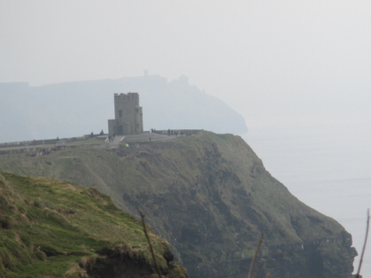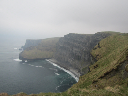 The next destination on our tour was one of Ireland's major attractions - The Cliffs of Moher. The Cliffs of Moher are where the edge of Ireland meets the Atlantic Ocean in the form of 700-foot cliffs. There are several paths that allow visitors to see these dramatic drop-offs. There is also a visitor center where there are presentations about the geology and wildlife of the area. We were given an hour and twenty minutes to experience the Cliffs of Moher however we chose. Everyone was warned to not to stray from the paths because the cliffs are constantly eroding. Occasionally, a chunk of land falls into the ocean. They did not have to tell me twice. I have a fear of heights. I would not categorize my fear as an extreme phobia but it is enough to cause my knees to feel weak when standing in high places such as this. Despite the warning, I saw tourists standing very close to the edge in hopes of getting a radical photo. Traci and I were told by several people we met in Ireland to dress in layers when going to cliffs. This turned out to be great advice because it was cold and windy. When it gets too windy, the attraction is closed. This was not the case on the day we visited but we met other tourists during our time in Ireland who were not able to visit the cliffs because of the winds. We had a good time at the Cliffs of Moher. I would have liked to have checked out the visitor center but we ran out of time.