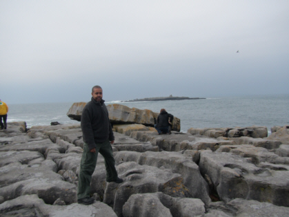Our driver took a scenic route back to Galway. We were driven along the coast and through farmlands where sheep and cattle grazed. One of the distinctive features of this part of the country is the use of dry stone walls instead of fences to delineate property. These stones are plentiful and last a very long time. Our guide pointed out famine graveyards where victims of the Irish Potato Famine of 1845 are buried. Some of these victims have never been identified. We made a quick photo stop at the Burren, a field of limestone slabs of rock.