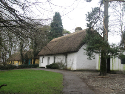 We took a walk through the Folk Park before heading back to the bus. The Folk Park is recreations of 19th century Irish homes - both rural and urban. We entered some of the farmhouses and fisherman homes. Each had peat burning in the fireplaces. This left the homes slightly smoky and with the distinctive burning peat smell. We barely scratched the surface of this 26-acre Folk Park in our allotted time. The Shannon Heritage organization has done an outstanding job with Bunratty Castle and the Folk Park.