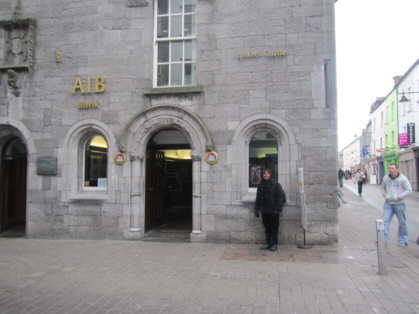 About three hours into our Galway walk, we decided to try to find that elusive castle again. This time we found it! We had actually walked past it several times that day. It is now an AIB Bank which looks nothing like the castle image in our minds. Inside the bank are pictures and postings describing how the castle once looked.