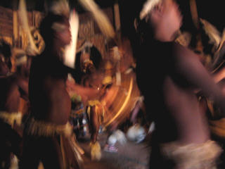At the conclusion of the dances, the performers led us out of the hut as they continued to sing (click to listen). They led us to the cafeteria where they left us to enjoy a nice buffet lunch. The lunch consisted of a salad bar, hot bar of meats and vegetables, and a dessert bar. The meal was included in our tour package. There was one traditional item on the buffet but I don't remember the name of it. It was made from ground corn and tasted a lot like cous cous.