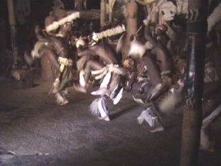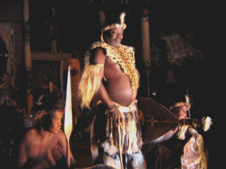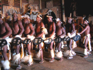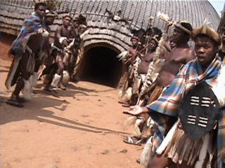 After the visit to the hut of the inyanga, we were given an opportunity to buy beadwork and other artwork from some of the Zulu women. Then we began to hear chants and singing as a crowd of Zulus paraded towards us and invited us into a hut. We had to enter according to their customs - men enter first and sit on the right-hand side followed by the women who sit on the left side of the hut. Once inside, a man lit some incense and walked it around the room. As he passed by me, I realized from the smell of the smoke that he was burning marijuana leaves!