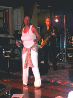 There were also two groups that didn't perform in the theaters or lounges, but they were by no means less talented. One night after I finished my snack at the midnight buffet, I wandered up to the pool deck to find the source of the incredible smooth jazz I was hearing. It was C.O.C.O Brown and the Phat Cat Players featuring Mike Phillips. All I could say was "Wow!". This group was playing some of the best fusion and smooth jazz I've ever heard. Mike Phillips was playing his heart out on the saxophone. This group was so good I ran back to my room to get my camcorder and to wake Traci up (she didn't budge). Unfortunately, by the time I got back up to the pool deck, the band had already finished their set.