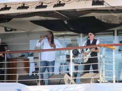 By this point in the week, I had discovered one of my favorite pool deck eating venues. Besides the pizza station, I loved the Indian Tandoor station. It was a mini buffet of Indian food. I helped myself to some of the meat and rice offerings along with some naan bread and then went to the other side of the pool deck to check out AWB (Average White Band). They were rocking their hits in addition to putting their spin on some timeless classics.