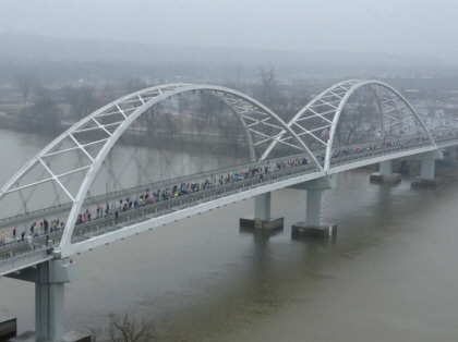 We were up by 6 AM the next morning so that Traci could participate in the 10K run. The course for this race allowed me to photograph her at more places than just the start and finish. Now that it was daylight, I was able to see a little more of downtown Little Rock. One of the most striking aspects of Little Rock is its series of bridges over the Arkansas River. I had a good view of at least one of them from our hotel room.