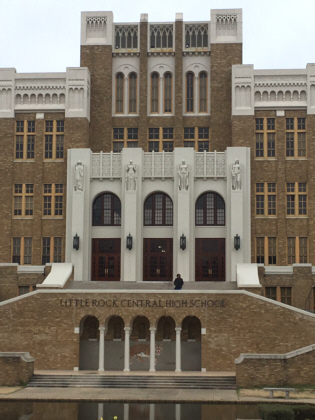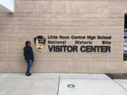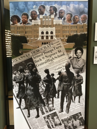 Later that day Traci and I took the hotel shuttle to the Central High School National Historic Site. This famous high school was at the center of the Little Rock Nine controversy that had to do with the desegregation of school systems in the U.S.. This took place at a pivotal time in our country. The National Guard was called in to protect nine black students who were attending an all-white high school at a time when segregation was the law. Today there is a small visitor center across the street from the school where we were able to see exhibits and film clips from that controversial period of the U.S..