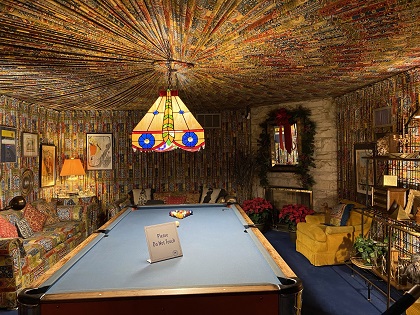 The mansion was fun to explore. I especially liked the pool table room with its upholstered ceiling and walls. We explored others parts of the property such as the racquetball building where there is a racquetball court, a pinball machine, and other diversions that used to keep Elvis and his guests entertained.