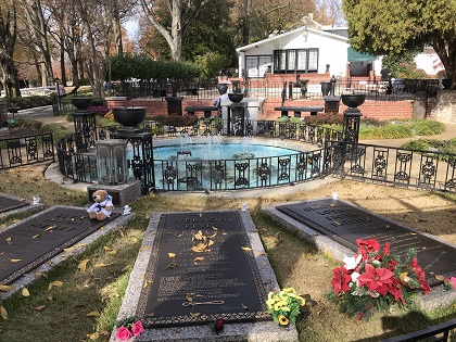 Out in the yard, we saw where Elvis kept his horses. There were horses grazing in the field while were there. Finally, just before exiting the mansion grounds, we saw the graves of Elvis and several of his family members. It had taken Traci and me a little over an hour to visit the mansion.
