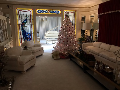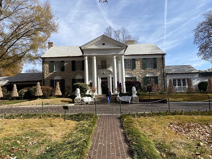 We started our day with breakfast at an IHOP. Then it was off to Graceland for the Elvis tour we had postponed. The parking attended honored the validated receipt we had received the day before. There are several tour packages offered at Graceland and they are not cheap. We purchased the Elvis Experience tour which came to $71/person after applying our 10% AAA discount. The tour started with us viewing a short film about Graceland before being let outside to board a shuttle bus. The shuttle bus took us across the street to Elvis' mansion. We were given a tablet and head phones that allowed us to hear pre-recorded commentary about each room we visited in the mansion. You walk through the home at your own pace. The tablet allows you to a choose a language for the narration. I decided to be adventurous and chose French. Learning to speak the language has been a hobby of mine for many years now. It was not too bad. The narrator did not speak the rapid French that I have heard on the streets of Paris, but still, I had to concentrate at times to understand.