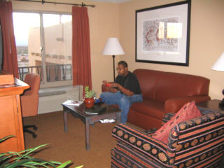 With the Plaza businesses closing for the day, we decided it was a good time to find the Homewood Suites Santa Fe Hotel, our lodging for the next two nights. Traci and I have got to send out a big THANK YOU to my world-traveling co-workers, Evette and Kesha. After their Santa Fe vacation a few months before ours, they told us about the Homewood Suites and the nice company discount we get when we stay there on leisure travel. Our two nights at the Homewood Suites cost less than one night at La Fonda. Furthermore, breakfast and a light dinner were included everyday at the Homewood.