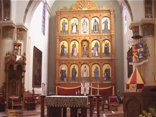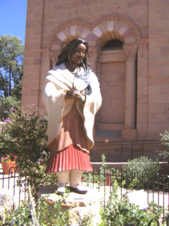 Unlike Loretto Chapel, St. Francis Cathedral is still part of the Santa Fe Archdiocese. As we entered the church there was a sign listing rules of conduct. My favorite one was "Do not toss coins into Baptismal Font". Traci and I spent a few minutes walking around the beautiful interior admiring the stained glass windows and altar paintings. There were people praying and some lighting candles but I was distracted from this serene environment by the echoing voice of some guy sitting in a pew talking on his cell phone.