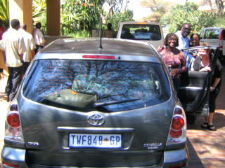 After seeing Afro-Dizzia!, Traci and I headed back to our hotel to try to catch the 4:30 leisurely boat ride around the lake. As we approached the hotel entrance, who did we see? Yes, it was Patricia, Jeffrey, Stephanie, and Susan. They had managed to get a flight from Cape Town to Johannesburg and rent a car to drive to Sun City. They had just checked into the Cabanas. They told us their travel experience wasn't a pleasant one. It sounded like something from the television show The Amazing Race. They had to deal with a late shuttle transfer to the Cape Town airport and sold out car rental places in Johannesburg - not to mention getting adjusted to driving on the opposite side of the road in a car with steering wheel on the opposite side. To make matters worst, they had a dead car battery on the day they were leaving Sun City. But anyway, they made it here and we were very happy to see them.