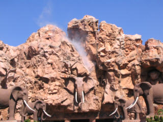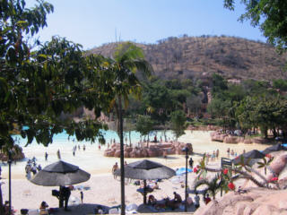 One of the major attractions in Sun City is the Valley of the Waves. It is a man-made beach area complete with a wave machine powerful enough to generate waves for surfing. In addition to the beach and the wave ocean, there is an inner tube river and a very intimidating water slide. There is no admission cost for the Valley of the Waves for guests who are staying at Sun City. Traci and I checked it out; however, we did not get into the water. Instead, we took a short walk along pathways in the woods that surround the area. There are all types of treasures to be found along these trails. We saw waterfalls and sculptures that go along with the theme of this fictional Lost City. Every hour between 10 AM and 5 PM, there is a simulated earthquake with rumbling sounds, steam, and vibrations on the bridge leading to the Valley of the Waves.