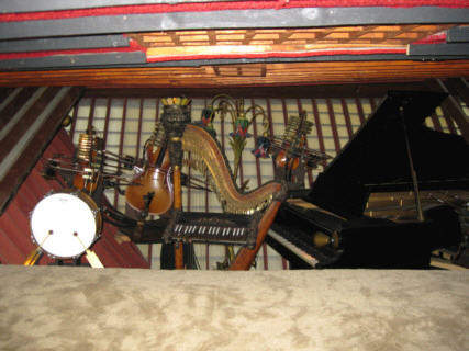 After the film, we toured the original vacation home. Even though Alex Jordan stood over 6 feet tall, he built his home with low ceilings. I always felt like I was going scrape my head but I actually had more room than I perceived. The interior was dimly lit and smelled old. We saw and heard the first of many mechanical music contraptions we'd experience throughout the day. As the strange fusion of instruments played Ravel's Bolero, it reminded me of the robotic instruments in Herbie Hancock's 80's music video, Rockit.